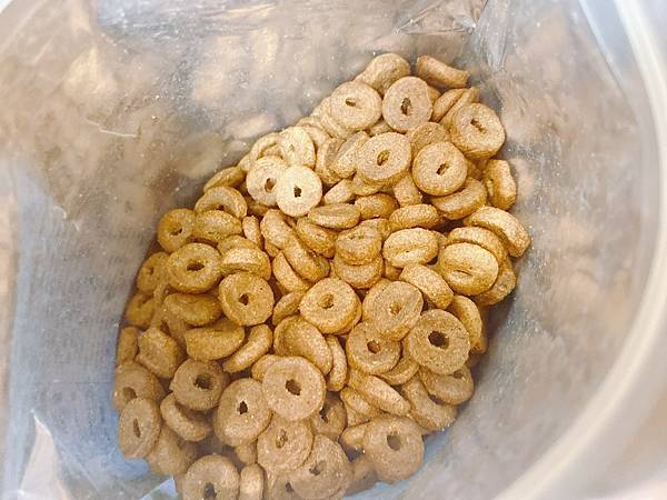 由於立刻換新飼料可能會造成毛孩腸胃不適,所以一開始兔崽子是拿來當獎勵點心