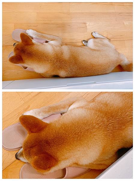 (最近 HIRO 很愛抱著我的拖鞋睡覺,好有愛~)